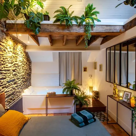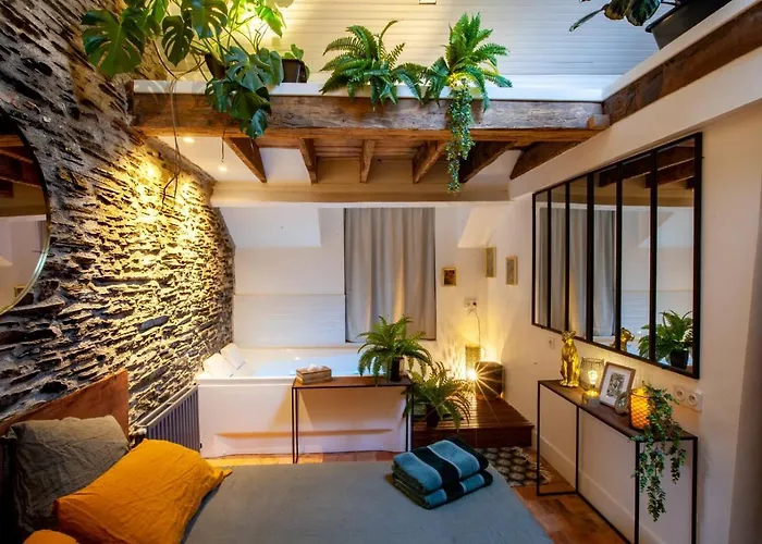 ベッドルーム1室のLove Room Jungle - Les Petits Plaisirs アンジェから歩いて6分離れたギャラリー ダビッド ダンジェなどの観光スポットに近接しています。 ビジネスとレジャーの両方でWiFiを利用することができます。